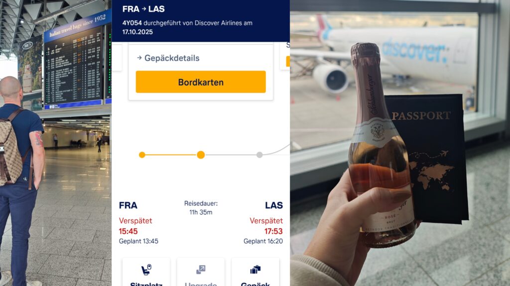 Wir hatten alles geplant: Flug mit Lufthansa, durchgeführt von Discover Airlines, Abflug 13:45 Uhr. Doch kurz nach dem Check-in kam die Nachricht: verschoben auf 17:53 Uhr. Zwei Stunden später: annulliert.