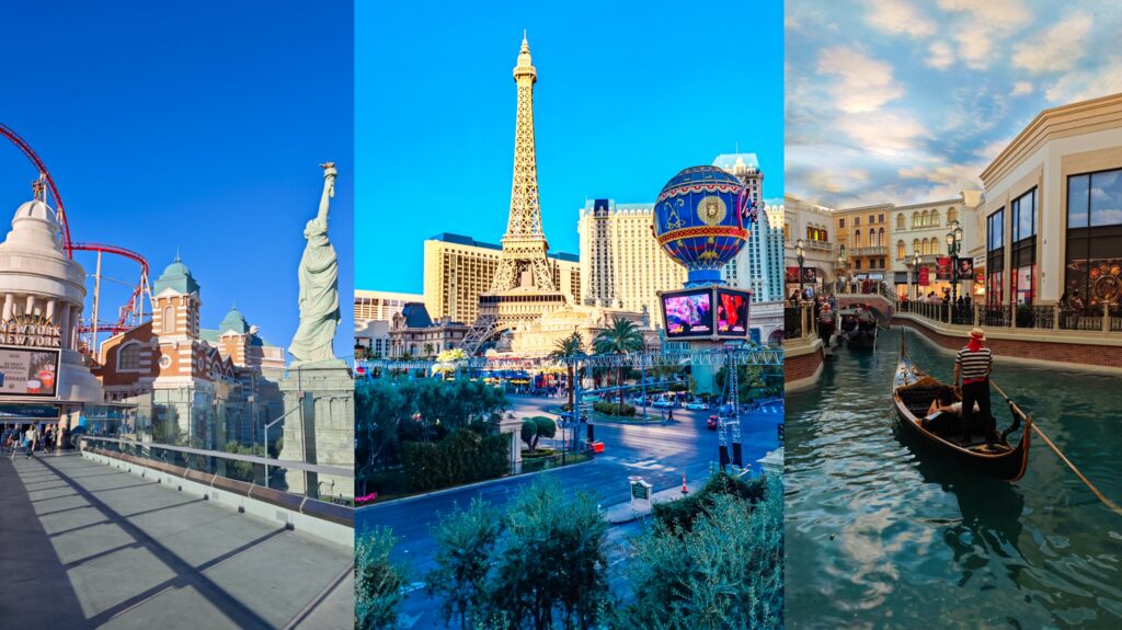Abends erkundeten wir den Strip: New York New York, Bellagio Fountain, Luxor – jedes Hotel ein eigenes Erlebnis.