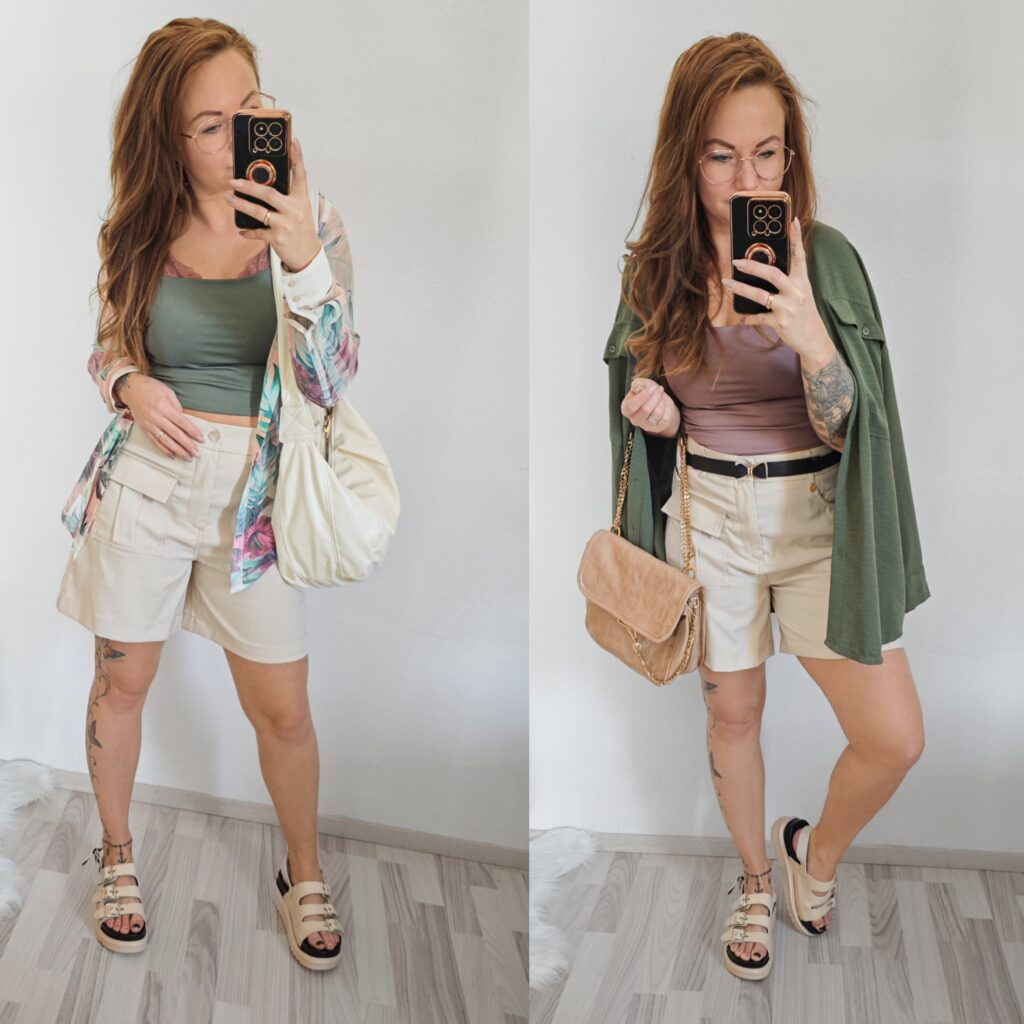 Ich liebe es, ein Kleidungsstück mehrfach zu kombinieren, um möglichst wenig Gepäck mitzunehmen und dennoch verschiedene Looks zu kreieren. Deshalb habe ich zwei weitere Outfits mit der beige, kurze Stoffhose eingeplant: