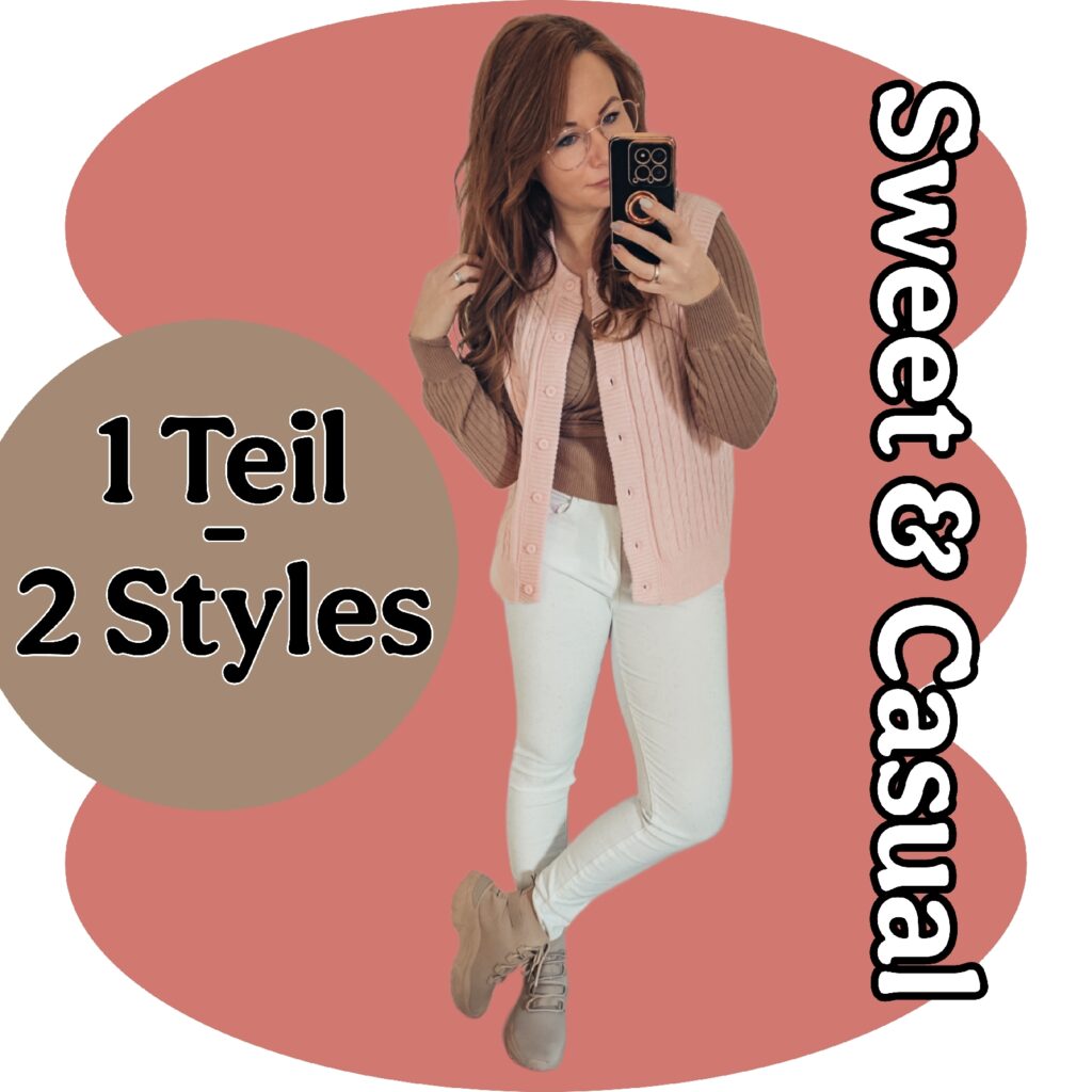 1 Teil – 2 Styles: So kombiniere ich meine rosa Strickweste