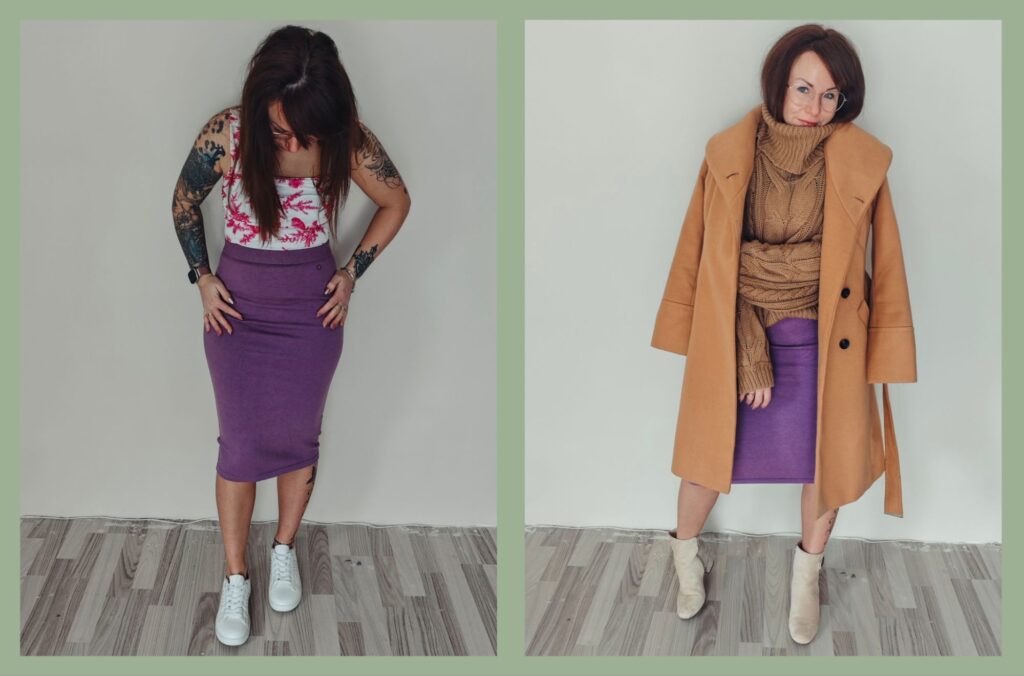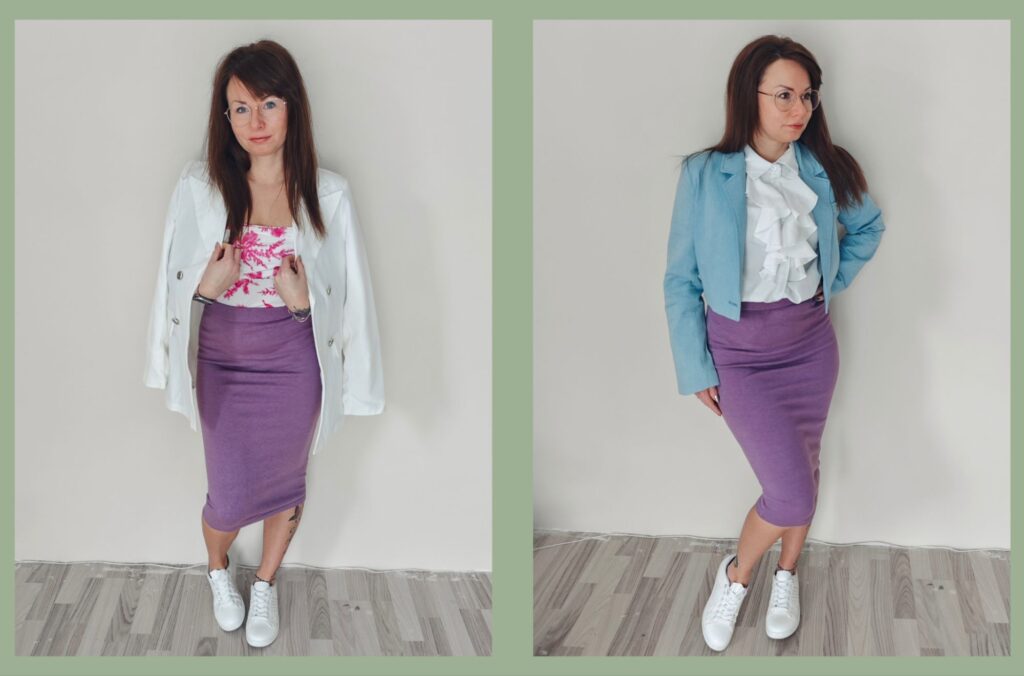 Am Ende zeigt mir diese Outfits wieder einmal, dass Mode nicht kompliziert sein muss. Manchmal reicht ein einziges Kleidungsstück, um ganz unterschiedliche Looks zu kreieren. Der lila Midirock ist für mich genau so ein Teil geworden – auffällig, aber trotzdem unglaublich vielseitig.