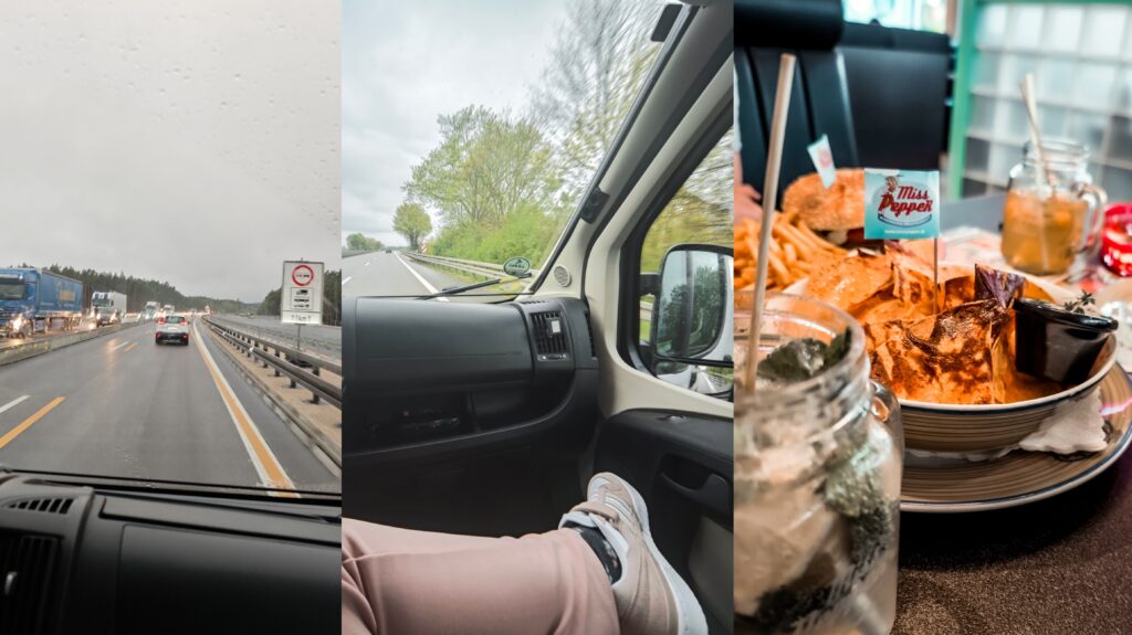 Gleich nach der Arbeit starteten wir unsere kleine Camper Rundreise. Auf dem Weg legten wir einen spontanen Stopp bei Mrs. Pepper ein – direkt an der Autobahn gab’s zur Einstimmung richtig gute Burger.