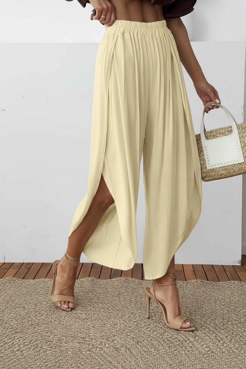 Schöne luftige Hose mit Seitenschlitz und Gummibund.